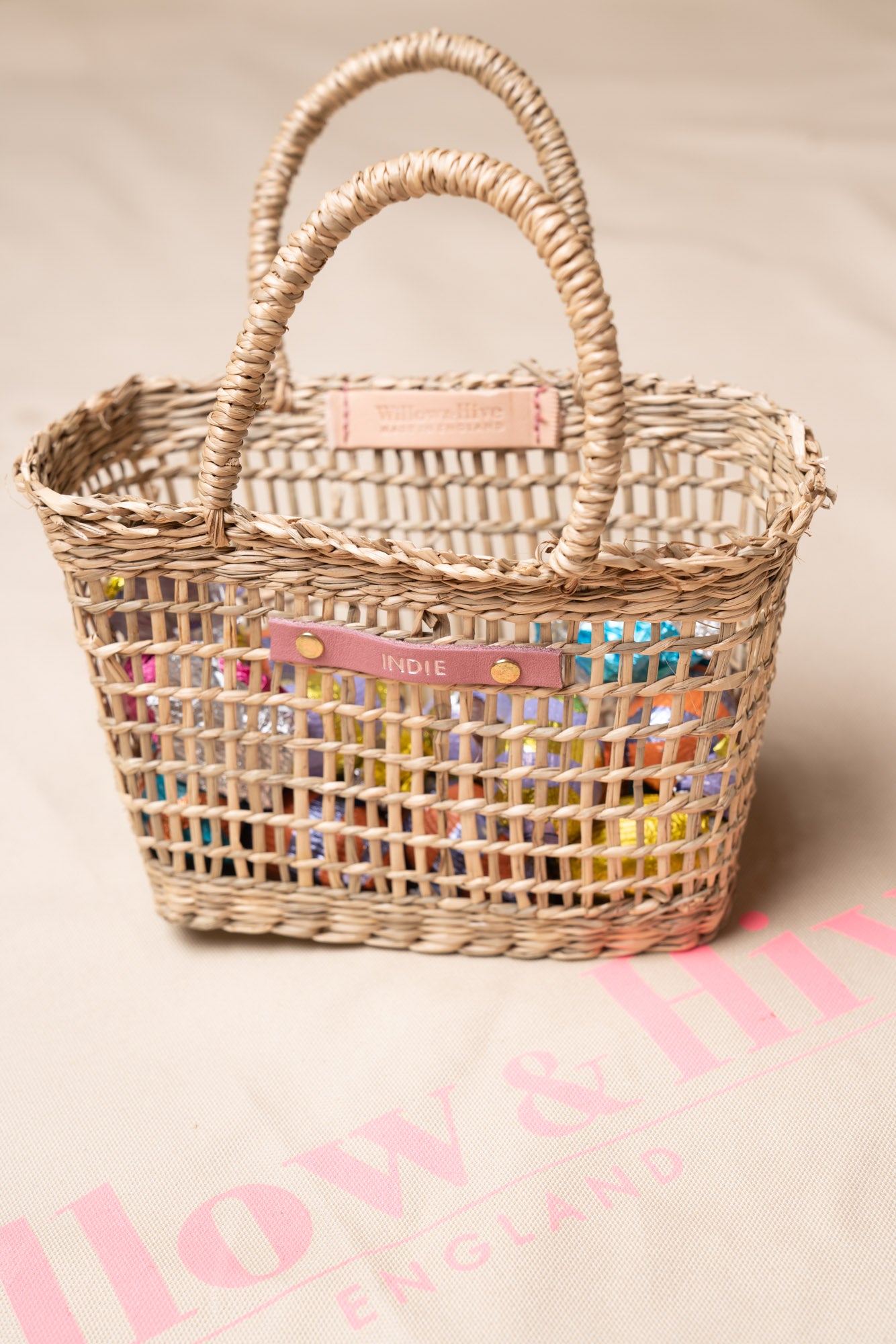 Woven and had finished with a personalised leather tab each basket can be made truly unique by adding personalisation. Select from a choice of 5 leather tab colours and 5 foil options.