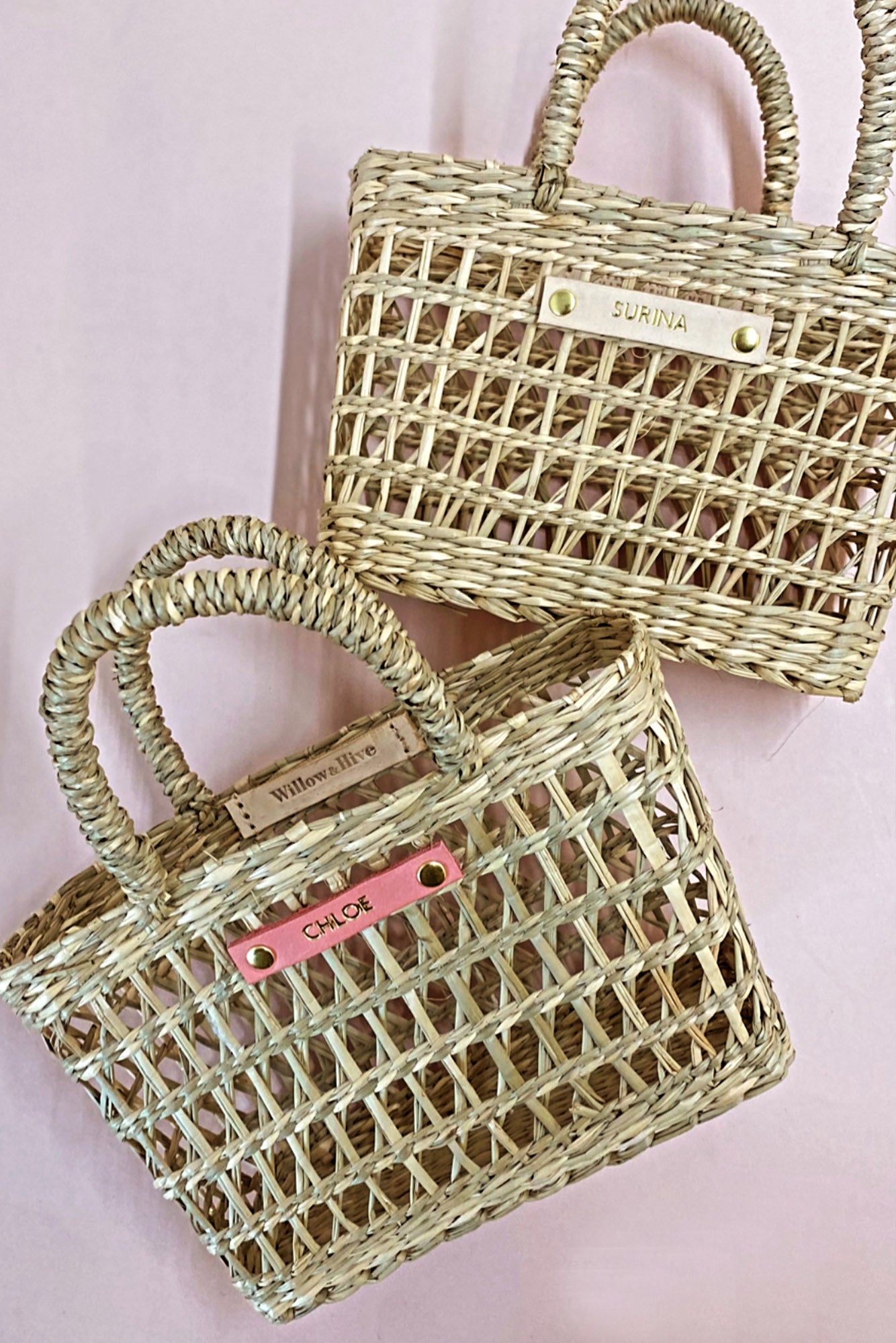 Small but roomy these baskets are really versatile. Great for toy storage, picnic basket, party bags, a stylish holiday bag, a gorgeous keepsake for a bridesmaid or flower girl or as sweet birthday gift.